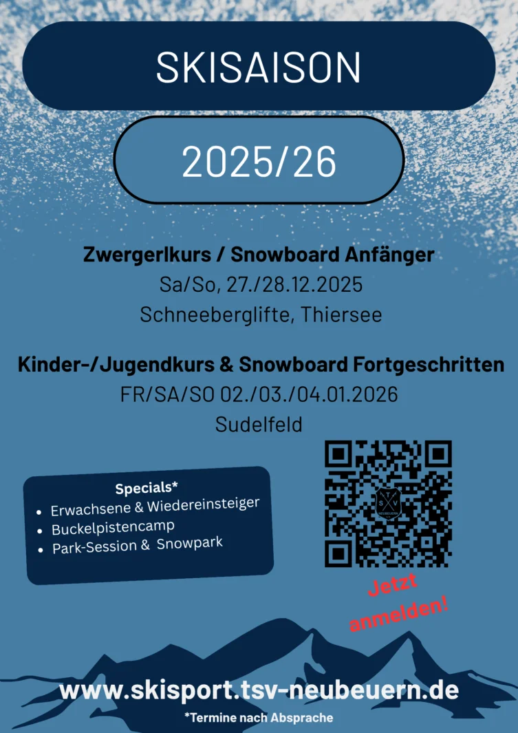 Die Ski- und Snowboardkurse werden im Skigebiet Sudelfeld durchgeführt - (Ortswechsel mit Aufpreis für Transport und Skipass bei mangelnder Schneelage vorbehalten).Treffpunkt für die Busfahrt ist um 8:00 Uhr am Parkplatz an der Hohenauschule (Schloßstraße 6, 83115 Neubeuern). Die Abfahrt ist pünktlich um 8:15 Uhr. Rückkehr ist ab ca. 15:15 Uhr wieder am Parkplatz der Hohenauschule. Die genaue Zeit versuchen wir über die WhatsApp Gruppe zu kommunizeiren.