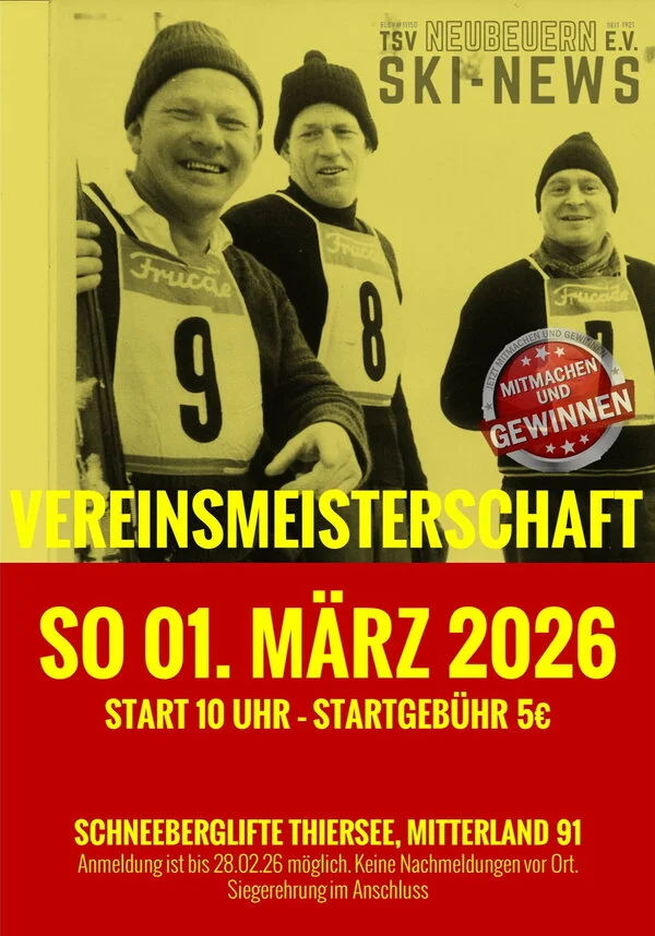 Einmal im Jahr veranstaltet die Skiabteilung des TSV Neubeuern gegen Ende der Saison die Vereinsmeisterschaft Alpin. Es gibt eine Einzelwertung, Familienwertung und ganz neu seit 2023 auch eine Vereins- und Firmenwertung.